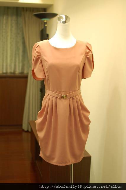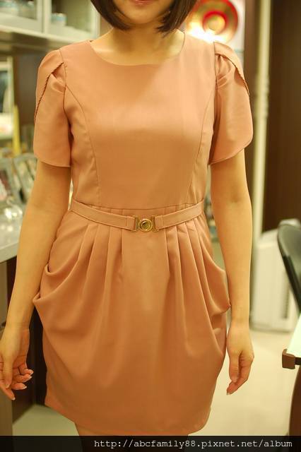 ****C90. 粉耦色花苞袖花朵造型洋裝 1800元*****