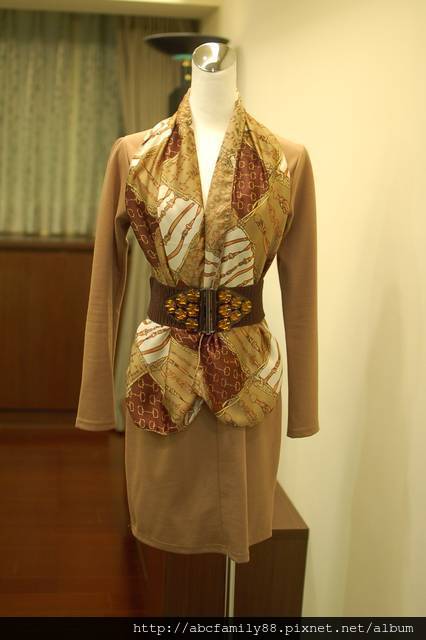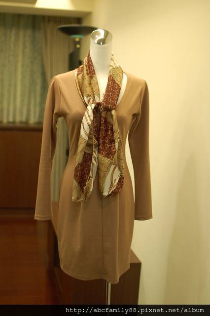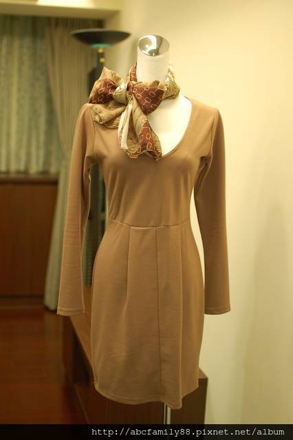 *****C92. 駝色長袖合身絲巾氣質洋裝 (長版衣) 1750元*******